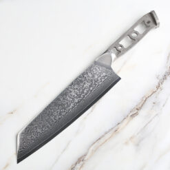 The kiritsuke knife blade blank is made of quality VG-10 high carbon stainless steel designed for high cutting performance (HRC= About 60 Degrees). Chop, slice, mince, scoop and tenderize with one single knife. The 8.5″ Kiritsuke Knife is your all-in-one cooking knife that holds an edge that can stay sharp for quite a long time.