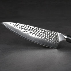 For most people, an 8-inch chef knife is the perfect kitchen blade for everyday use. If you’re just learning your way around the kitchen this size is great to cut through anything and a perfect way to become comfortable by using a knife with a stable and durable G10 handle.