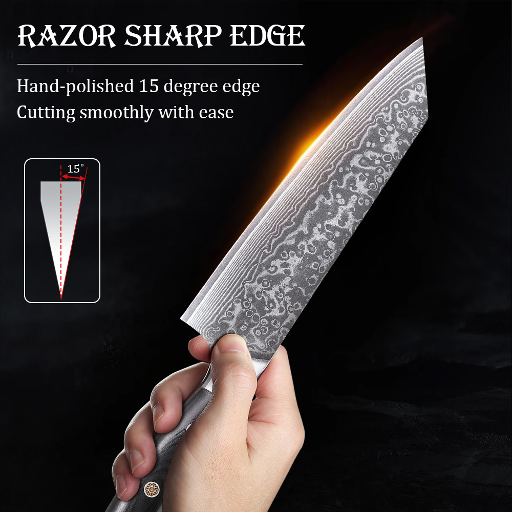 Crafted from specially formulated VG10 stainless steel, the blade maintains a razor‑sharp edge and resists corrosion, making it a reliable tool for both professional kitchens and home chefs. The ergonomic handle ensures a secure grip, reducing fatigue during extended use.